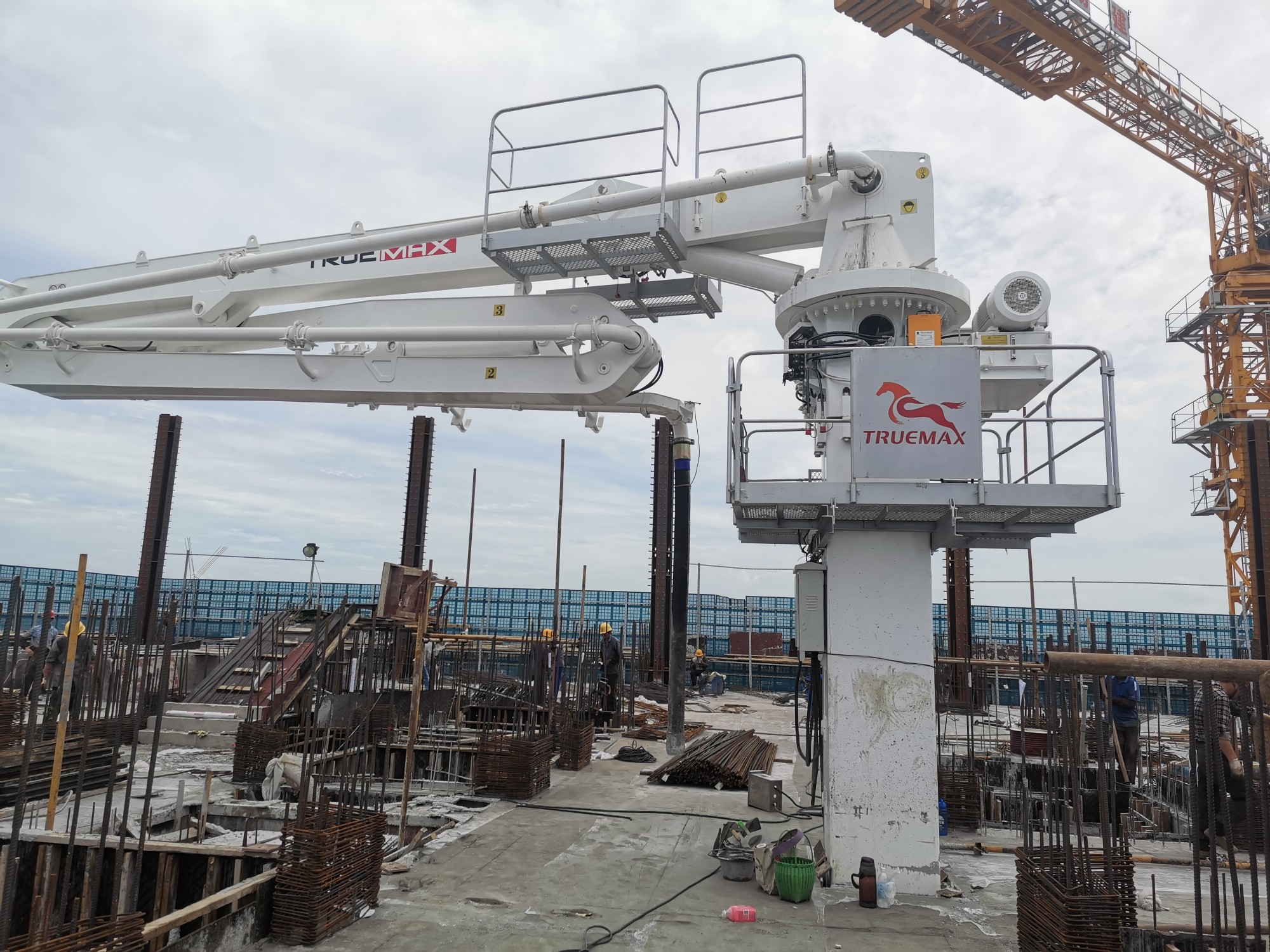 電梯井內(nèi)爬布料機(jī)是利用電梯井預(yù)留孔進(jìn)行混凝土布料機(jī)安裝方式,使得施工人員更安全更可以提高混凝土澆筑效率,省時(shí)、省力、高效的電梯井內(nèi)爬液壓布料機(jī)。