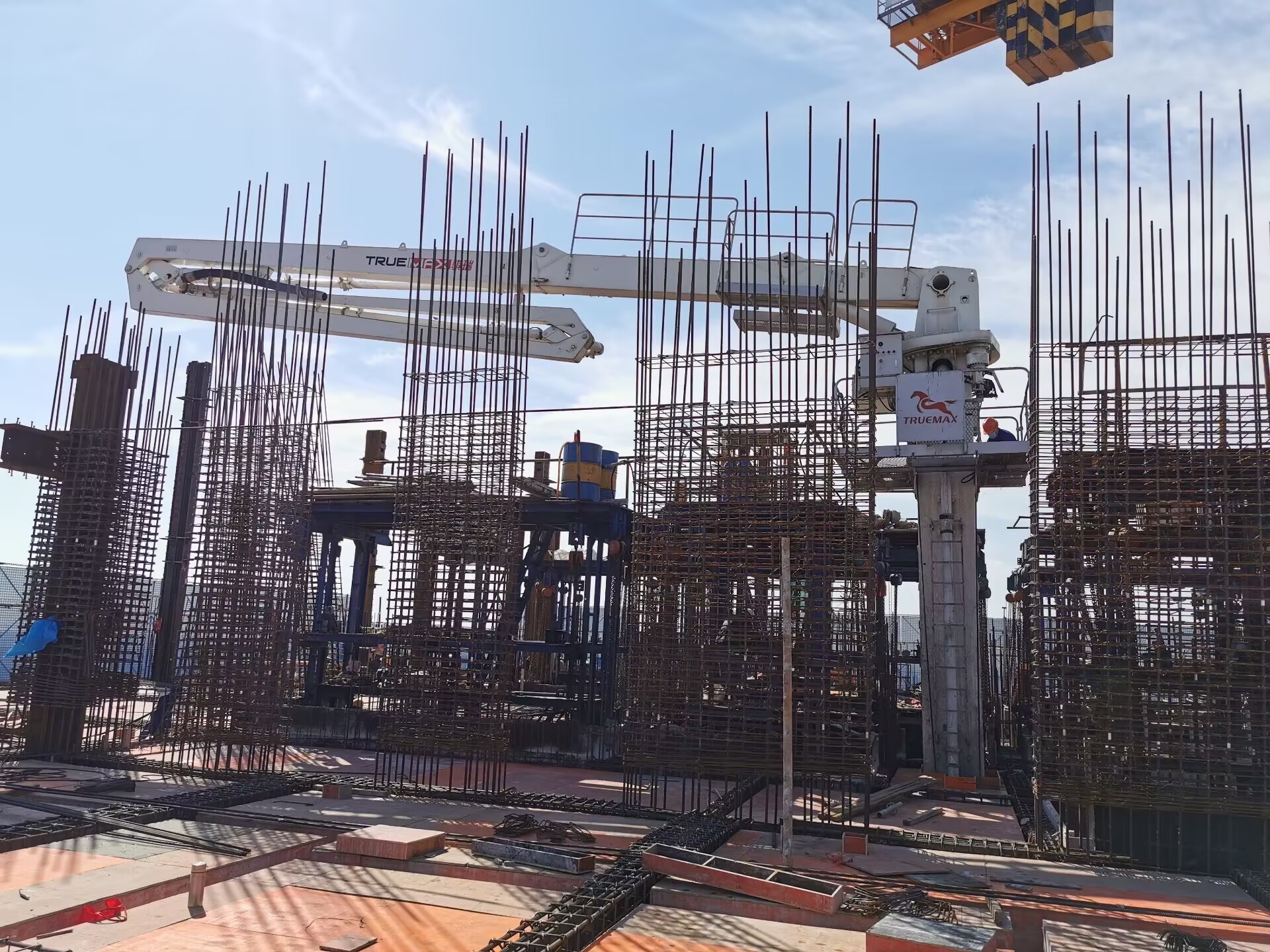 內(nèi)爬布料機(jī)的臂架為R型,全液壓驅(qū)動(dòng),折疊、展開(kāi)靈活,布料范圍廣。臂架結(jié)構(gòu)采用高強(qiáng)度鋼板制作,強(qiáng)度大,自重輕。