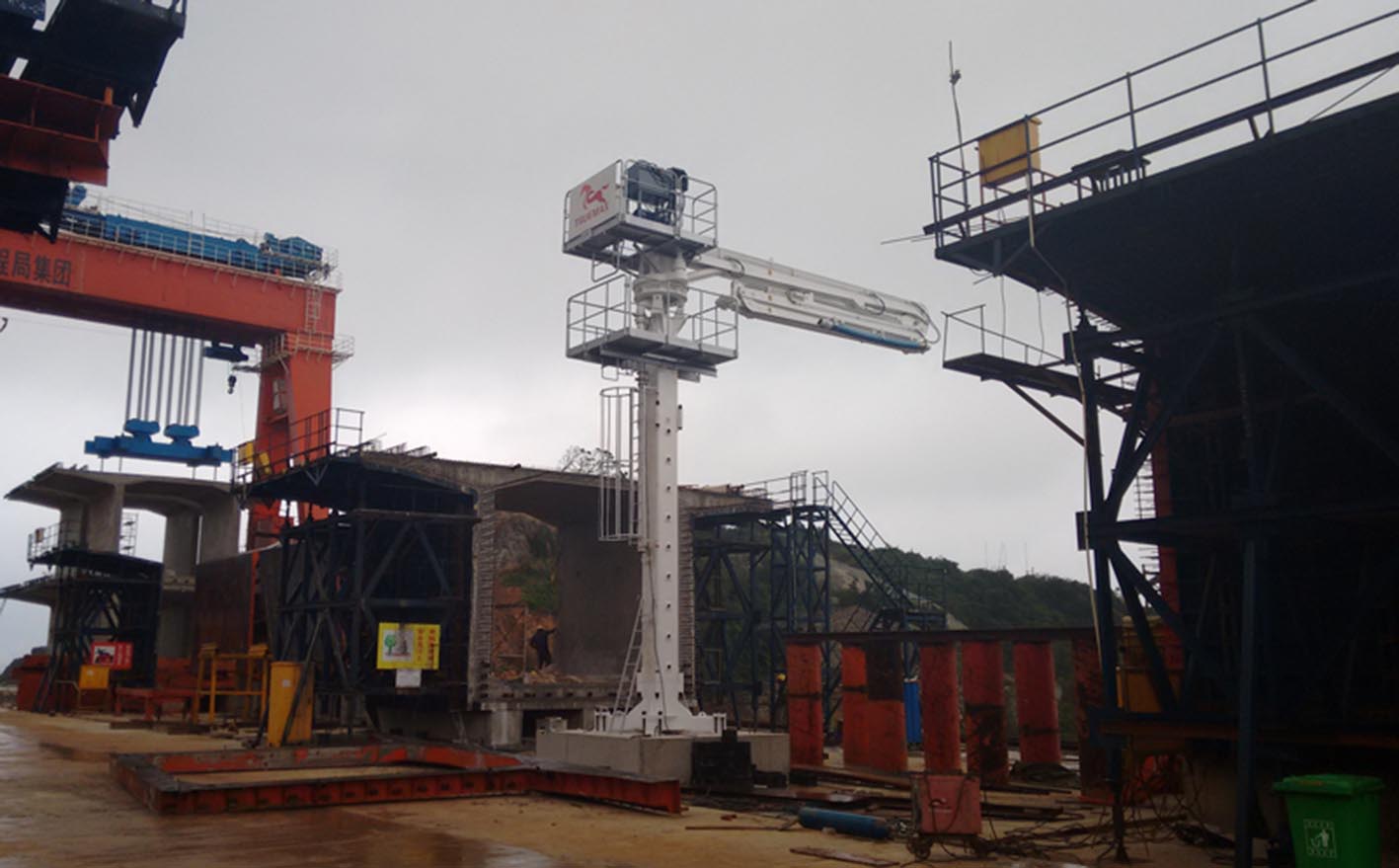 ·臂架分為三節(jié),Z型,全液壓驅(qū)動(dòng),折疊、展開(kāi)靈活,布料范圍廣。臂架結(jié)構(gòu)采用高強(qiáng)度鋼板制作,強(qiáng)度大,自重輕。